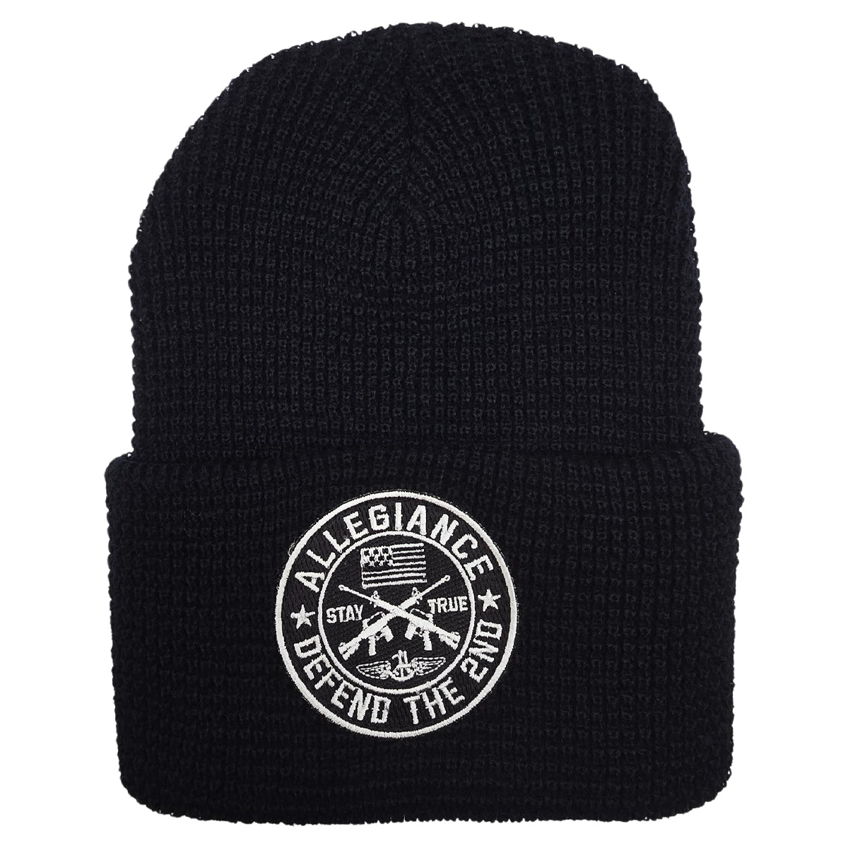 Show your unwavering support with the Allegiance Defend the 2nd Beanie. Made from 100% acrylic, this beanie is designed to keep you warm and comfortable, no matter the conditions. Its cuffed design offers a snug fit while adding a clean and bold look to your outfit. The embroidered patch on the front features the "Defend the 2nd" message alongside crossed rifles and the Allegiance logo, symbolizing strength, patriotism, and the right to bear arms. Whether you're out in the cold or making a statement, this beanie is the perfect companion. Stay warm, stay true, and represent your values with the Defend the 2nd Beanie today!